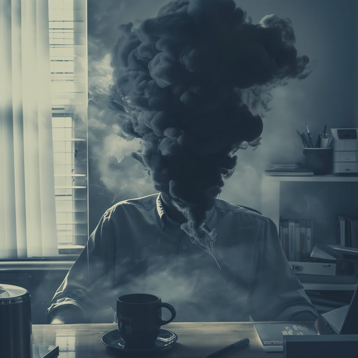 The mass grew, taking on my shape but none of my features. Black smoke, swirling endlessly, dense and dreadful. It was impossible to ignore. It was just a reflection, never showing signs of autonomy, but it still terrified me to my core. Was it me, or something rotten inside of me? I grew a beard again, let my fashion slip to shit, and wore a permanent look of weary paranoia on my face.
